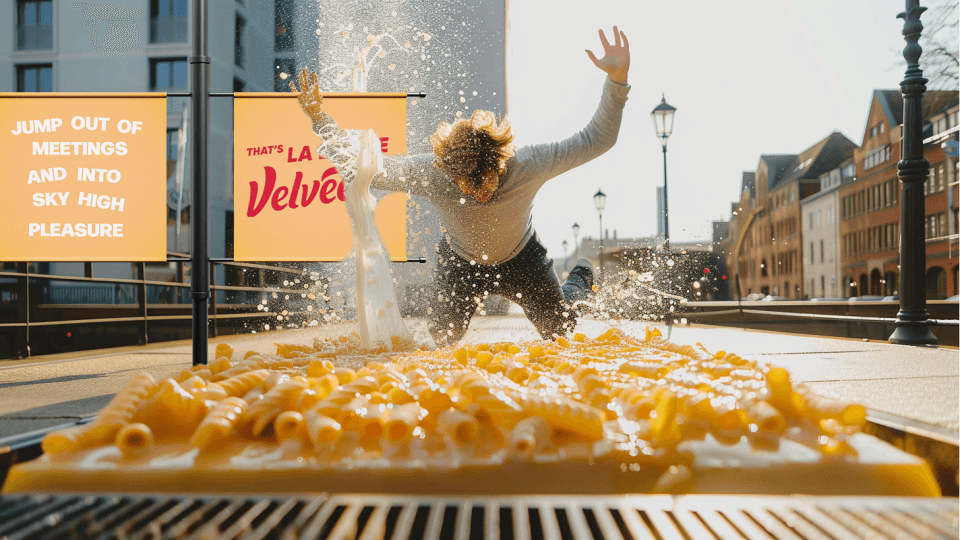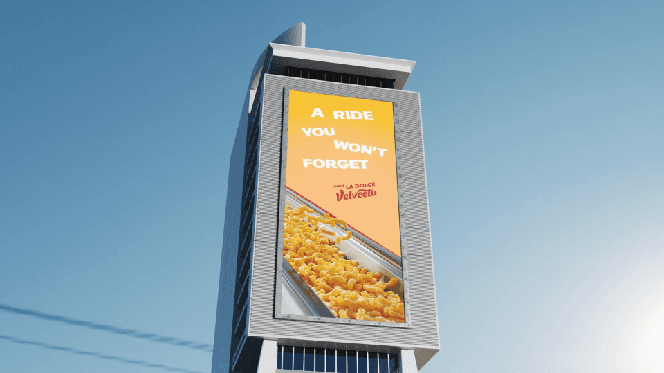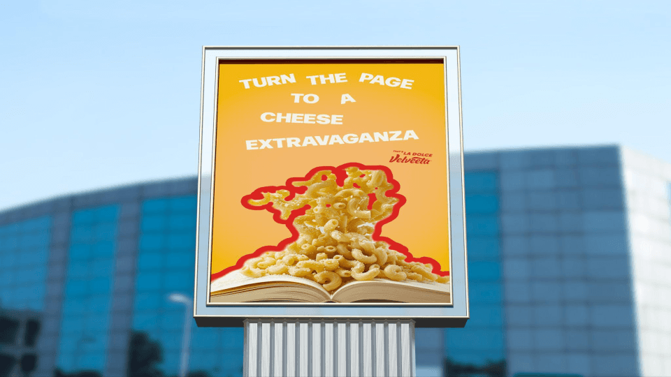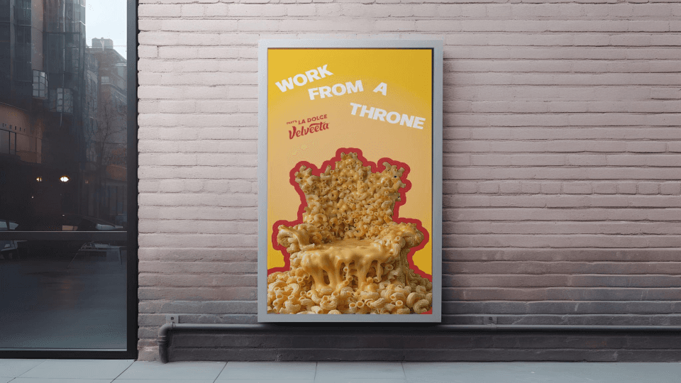 Velveeta wants Gen-Z to live a life full of outrageous pleasure, but how can they do this when they are working more than ever, especially compared to our European counterparts? We show Gen Z, through print and interactive mediums, that work doesn’t have to be devoid of pleasure. Work can be a place where the small moments of pleasure live outrageously. And with Velveeta, you can savor these small yet outrageous moments of delight.